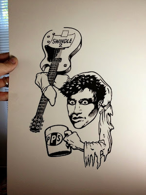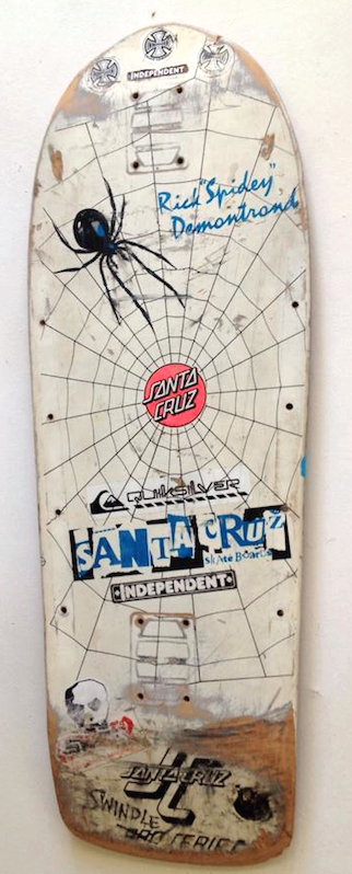 "When I was summoned to Novak’s office he said, "okay, we’d like to do a model with you." So I drew up a contract and we landed upon an agreement and now it was time to get started on model #2 for Santa Cruz. I favored the flip-tail and loved my experience riding Lance’s board, so I phoned Lance up and asked him if could I copy his shape. He agreed as the shapes never come out exact and they vary and his original wasn’t the exact shape he started out with. So the initial prototypes were a Lance Mountain Future Primitive shape with a flip-tail. I made a template of Lance’s deck and sent it to Tim. The graphics were influenced by Lance’s caricature of me in his "Book of Spide." I had also devised a marketing plan based on The Sex Pistols “Great Rock n Roll Swindle“ film with its ten lessons that had a story like quality to them that one could follow. Each of the ten lessons anticipated print ads, so it was with this aesthetic in mind -- Malcolm McClaren-esque via Andrew Loog Oldahm PR techniques, the energy of The Sex Pistols, and pop art -- that I would devise my graphics. I had laid out the graphic in detail to Lance after he’d agreed to draw it for me. Other than John Lucero, for me Lance was the only one who could do this as he was familiar with the pulse of that type of art, music and all the subtle nuances that go with what I was trying to do.